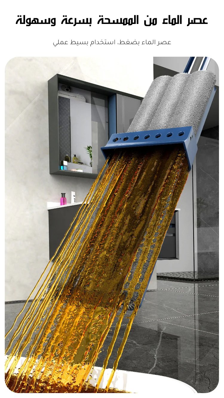 ممسحة مسطحة كبيرة الحجم، عصر الماء بضغط(إهداء قطعتين من المنشفة)