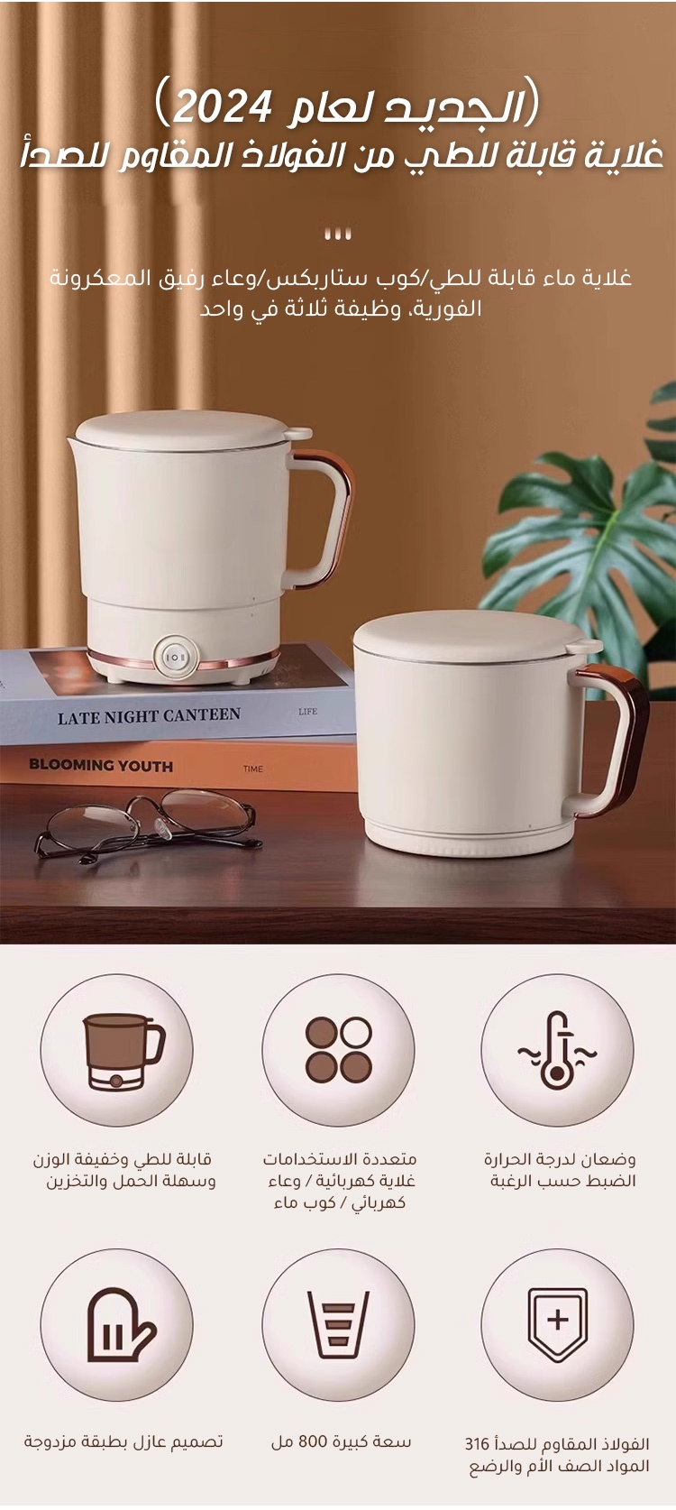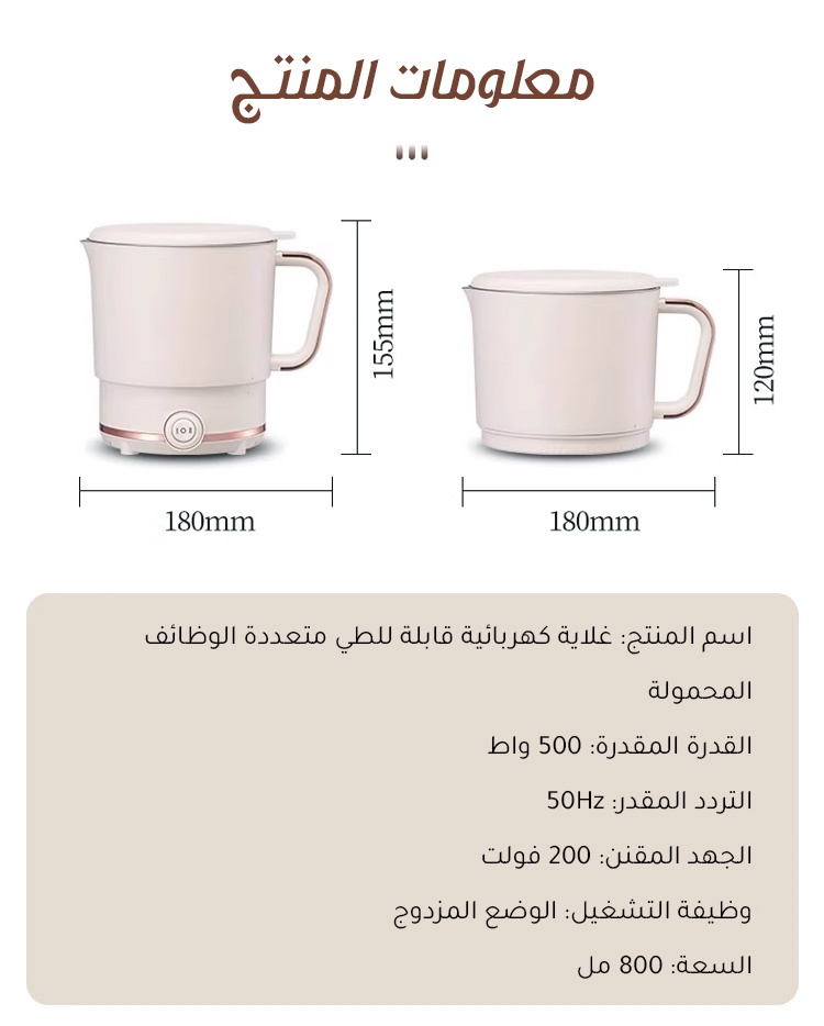 غلاية كهربائية محمولة متعددة الوظائف قابلة للطي