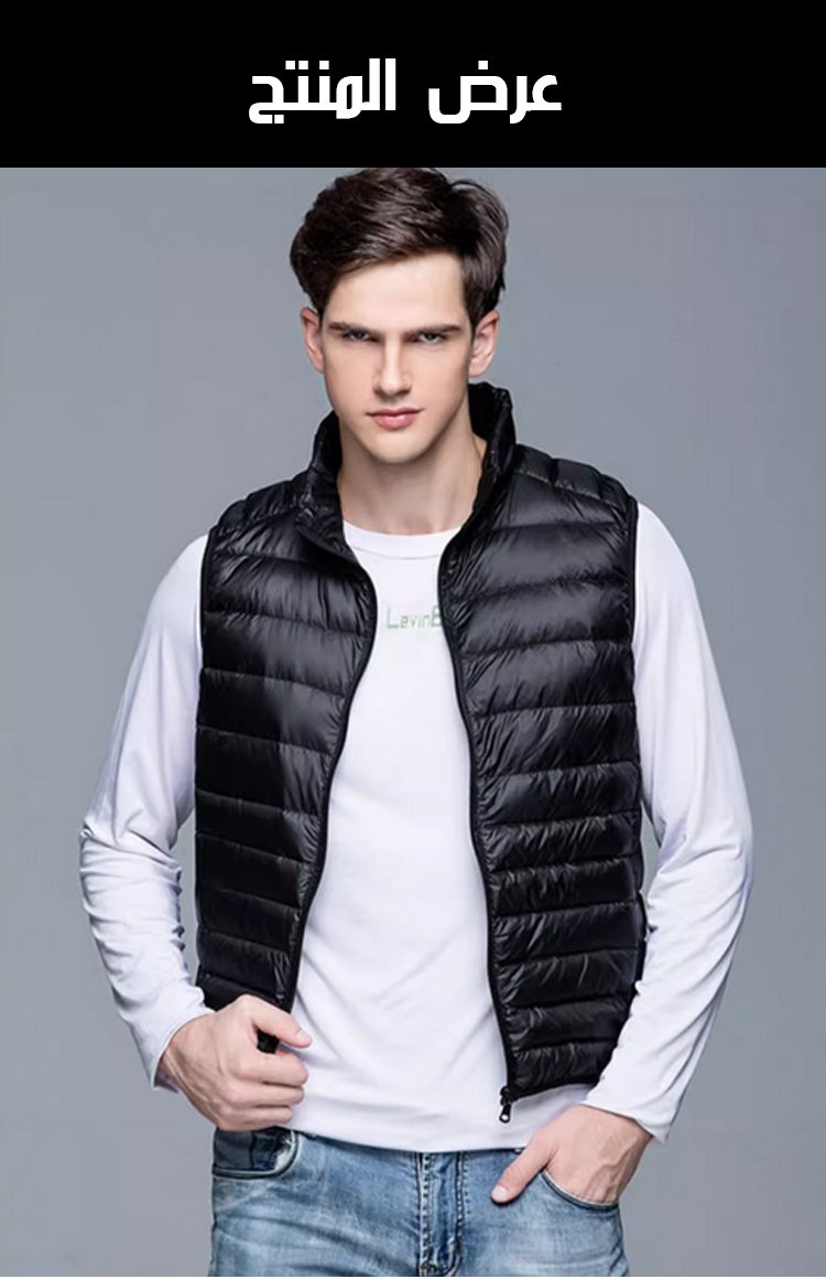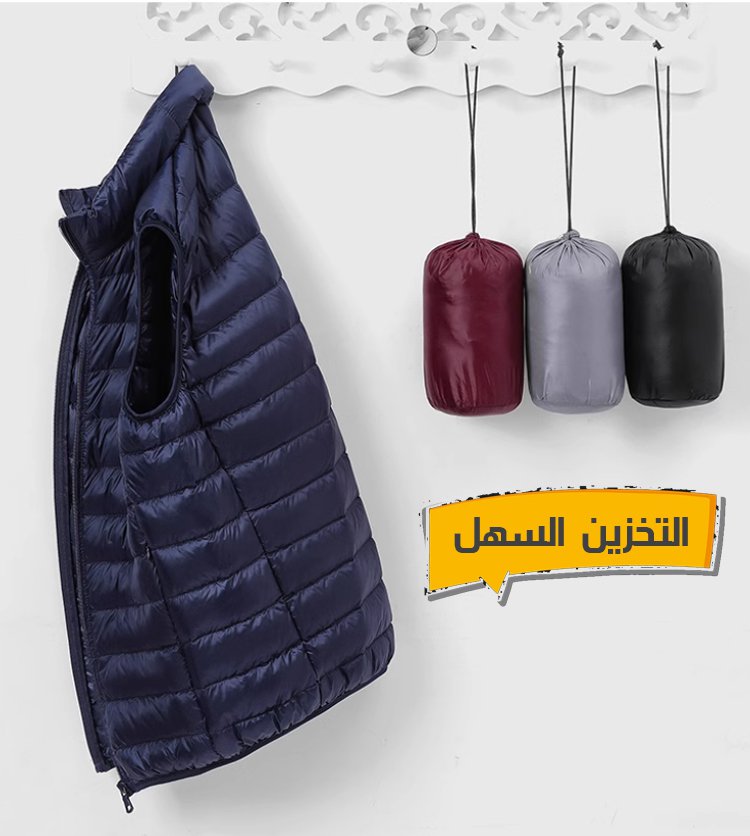 [جاكيت يمكن تخزينه في الجيب] جاكيت شتوي رجالي مبطن بالزغب البط٩٠% بدون أكمام